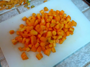 First wash the carrots well, peel them, and remove the tops. Next cut the carrots into whatever size or shape you are going to use them in. I will dice mine into quarter inch cubes for chicken pot pie, but you can slice them or keep them whole.